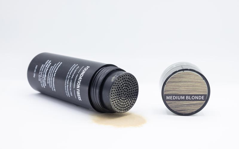 Color: Medium Blonde. Premium keratin fibers for both men and women of all hair types instantly create the appearance of naturally thicker hair. Statically charged to adhere to even the finest hair strands, these hair fibers resist rain, wind, and precipitation. Available in 7 blendable shades to match any hair color.